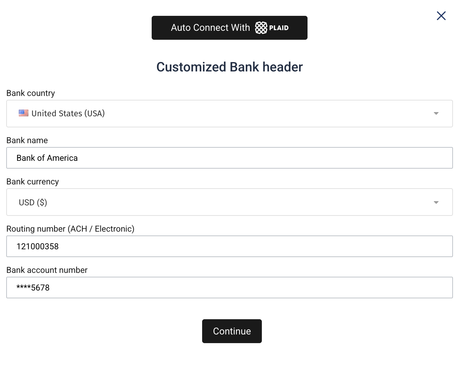 Veem Bank Plugin allows to seamlessly collect bank details from your customers, ensuring secure and compliant payment onboarding within your app or platform.